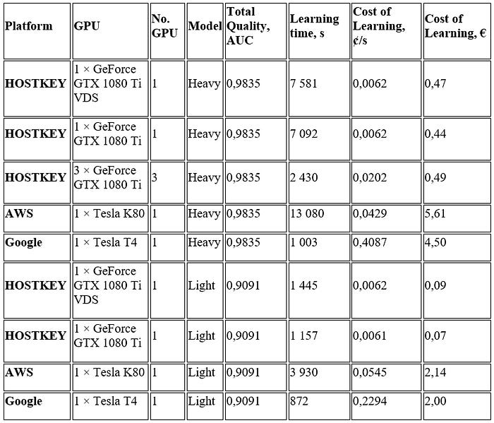 This article represents comparative experience in training a model on different GPU platforms: Google, AWS and a domestic Dutch hosting provider HOSTKEY. Data science experts from Catalyst have compared the time and monetary investment in training the model and have chosen the best option.