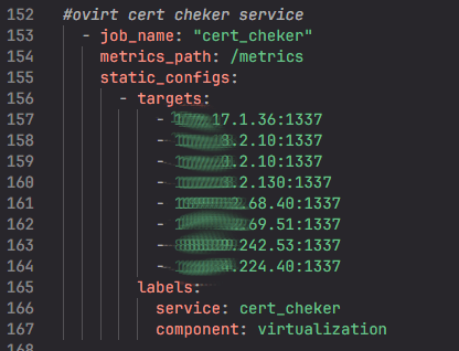 In the process of implementing SSL/TLS certificate monitoring within the oVirt ecosystem, we developed a reliable and automated solution based on a custom-certchecker exporter. This tool enables real-time tracking of the expiration dates for critical certificates, such as apache.cer and websocket-proxy.cer, thereby preventing potential disruptions to web interfaces and console connections to virtual machines.