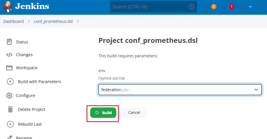 After that, we proceed to the Jenkins task conf/prometheusdsl and initiate the update for the federation_lang file.
