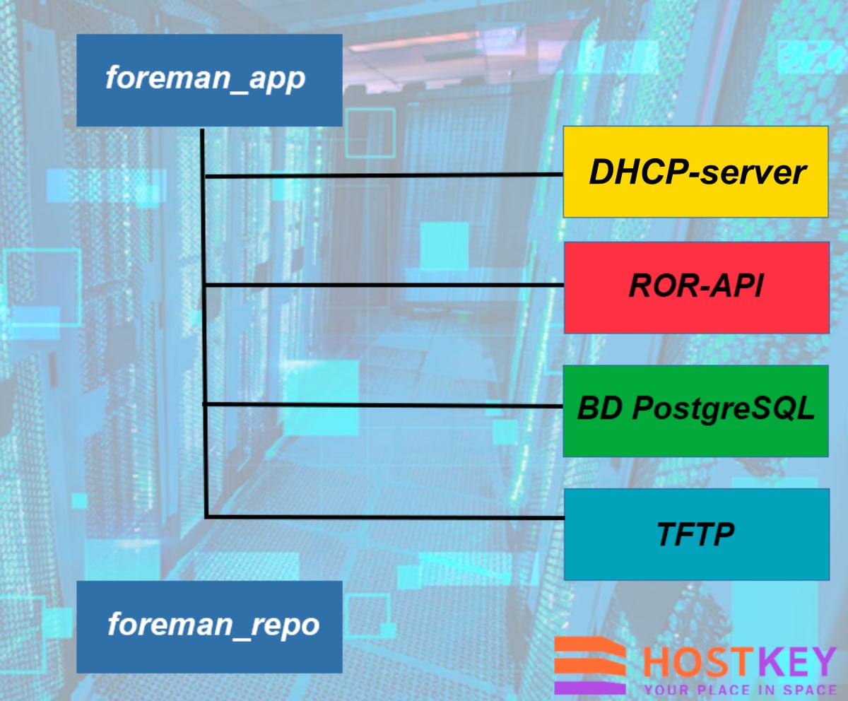 In our case, Foreman serves as a PXE server for mass deployment of operating systems on bare-metal servers and virtual machines (when there's no existing template or creating one isn't practical). For those interested in the technical details of working with boot images, we recommend reviewing our article on Linux LiveCD based on CentOS and PXE booting techniques using Foreman.