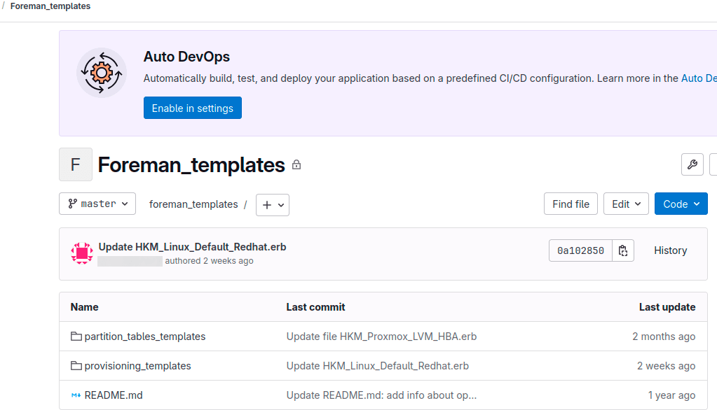 All configurations are now stored in GitLab within separate branches prod and develop. The administrator’s workflow has been significantly simplified: after working with a template, changes are pushed to GitLab using the Git command, which saves them in the repository. GitLab automatically triggers a webhook that communicates with the development Foreman instance via the API and updates all templates, including the one modified by the administrator.