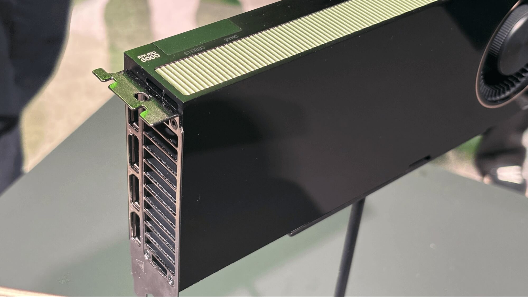 The main feature of the Server Edition is its passive cooling, which utilizes the standard airflow of the server chassis. Thanks to its compact size, it allows for the simultaneous placement of a large number of GPUs in a row (photo from the exhibition).