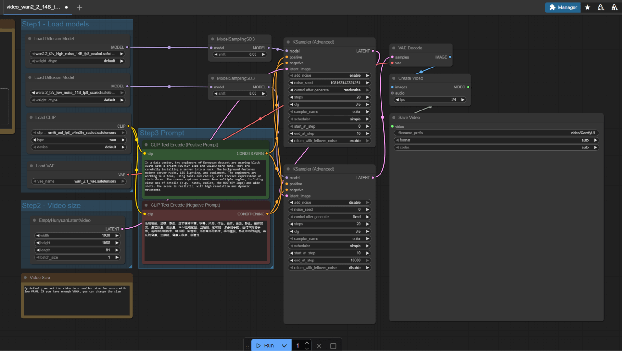 The process involves using the video generation mode based on prompts (Wan 2.2 14B text to video), which operates as follows: