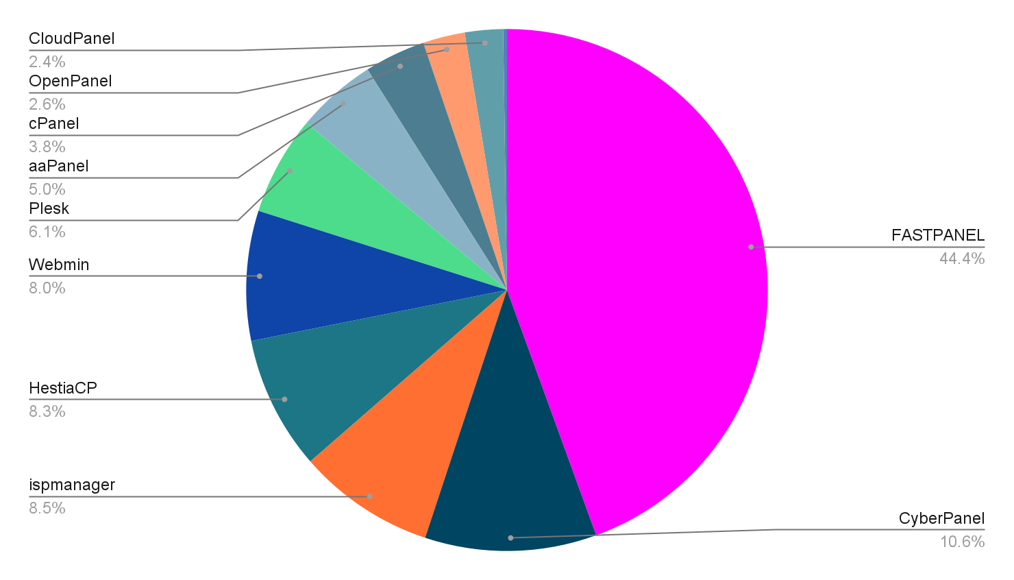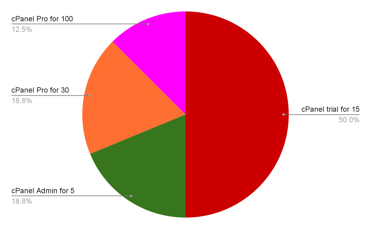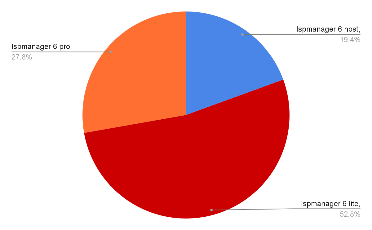 Currently, clients have access to over 10 pre-installed hosting control panels, and the distribution of orders as of the time of writing this article looks like this: