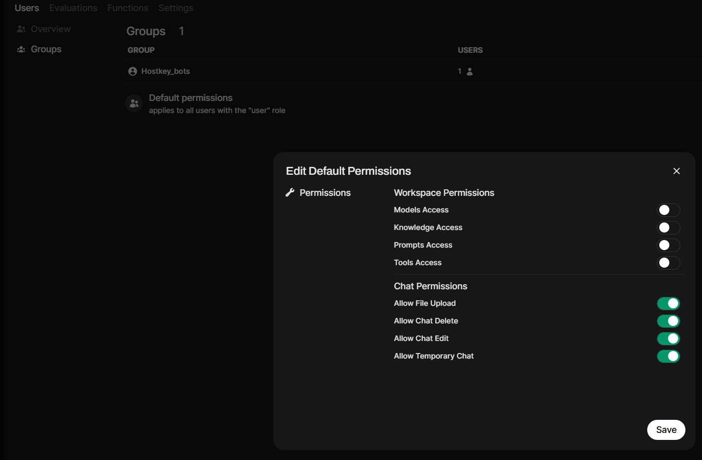 The second major change affects user management. Now, you can create and manage user groups, which simplifies their organization, clearly defines access to models and knowledge bases, and allows permissions to be assigned not individually to each user but to groups. This makes using Open WebUI within organizations much easier.