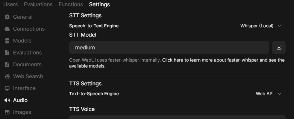 Convenient Whisper Model Settings: You can now specify which model to use for speech-to-text conversion. Previously, only the base model was available by default, which wasn't ideal for non-English languages where the medium model is more suitable.
