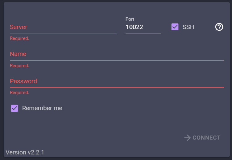 Let's try entering the server's IP address, port 10011 , and unchecking "SSH." Success! We're in. But it's not very secure, although the method works. We want to be able to log in and manage the server via SSH.