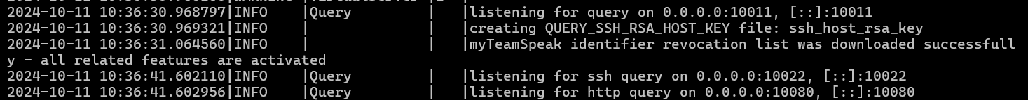 ...Then we'll see that port 10022 is missing from the output. What does this mean? We forgot to forward this port in Docker (face palm emoji here). To be precise, this detail is overlooked in the documentation for the TeamSpeak Docker image we used for deployment because its author deemed this management method unworthy of attention.