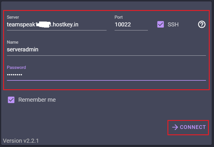 Are we doing something wrong? Where do we get the login and password to log in? Well, you need to find them in the TeamSpeak server launch logs within Docker. To do this, you'll have to SSH in (using the credentials you tried entering into TS3 Manager) and execute the following command: