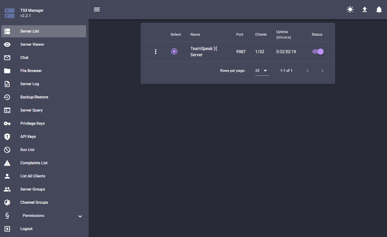 For enhanced security, you can add the -e WHITELIST=<server_ip>,myts3server.com parameter to the launch command, listing the servers you want to manage. This is particularly useful if you have a version beyond the free one and can set up multiple TS3 servers on your VPS (for example, by requesting an NPL license that allows for up to 10 virtual servers with 512 slots). This way, you can create, delete, and configure them all through TS3 Manager, which operates via ServerQuery.