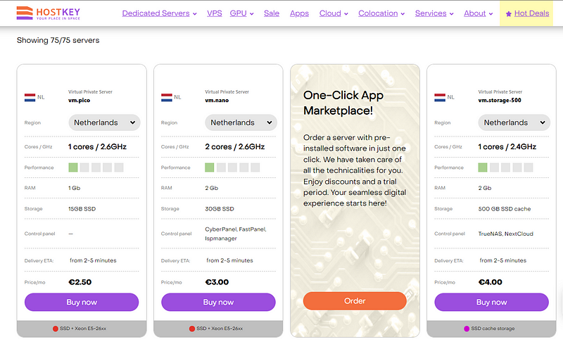 If you are a new client, first register on the HOSTKEY website and go to https://HOSTKEY.com/vps/ and scroll down the page to the list of available servers.