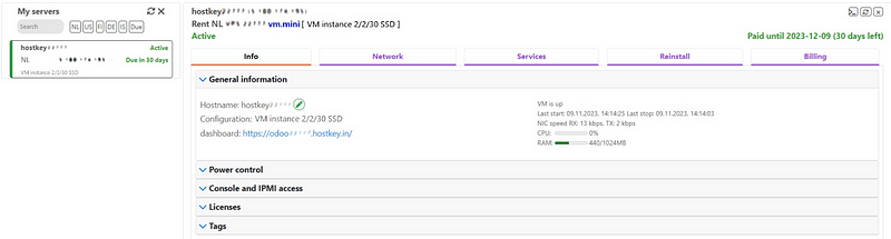 We at HOSTKEY have taken care of everything in such a way that the client can order a server with pre-installed Odoo effortlessly at no extra charge. It is included in the cost of the server, and the system itself is deployed ready to use and free.