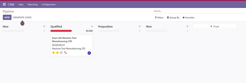Next comes the initial configuration. The title of the article says CRM, so we select the CRM module and click Enable. In a few moments you will see a menu where you can now customize your enterprise and set up your workflows.