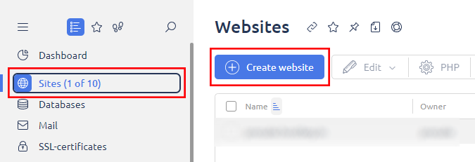 1. Select the "Sites" or "Web Server" tab, depending on the ispmanager version: