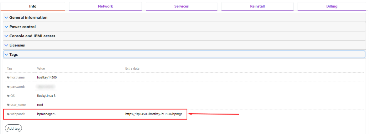 - link to access the ispmanager webpanel: in the webpanel tag;