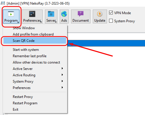 In our example, we will use Nekoray.