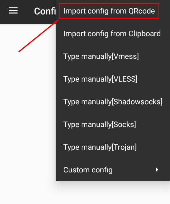 3. From the menu, select "Import profile from QR code” and scan the QR code in the 3X-UI GUI panel: