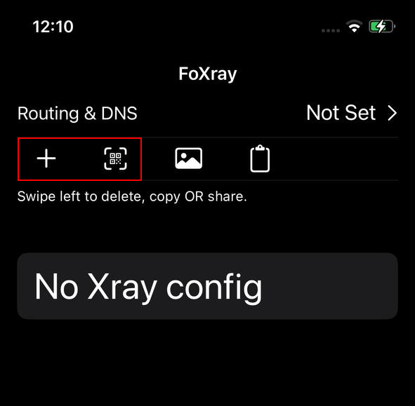 2. Open the FoXray app and press the "+" button or scan the QR code in the 3X-UI GUI panel: