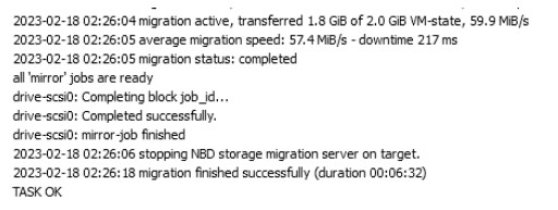 The status of the migration can be tracked in the “Task” window: