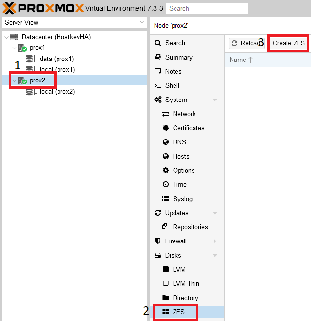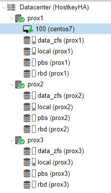 As a result of this step, a cluster of three servers was configured, the internal disks with ZFS and the “HA” option on the virtual server.