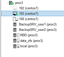In the main server management window, you need to select the virtual server that you want to put on replication, in our case it is located on the physical server “prox1”, the name of the virtual server is “100 (CentOS 7)”.
