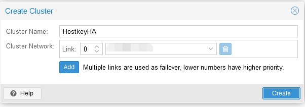 Step 2. Enter the name of the cluster and the network (or list of subnets) for the stable operation of the cluster. Then click on the “Create” button: