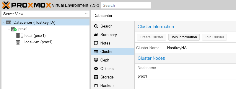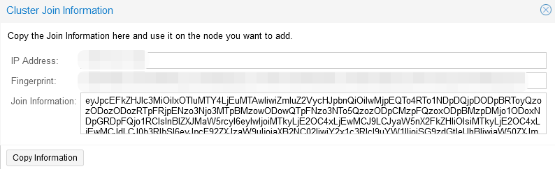 Step 3. In the “Cluster” section, go to the “Join information” tab and copy the information from the “Join information” window, this information is needed to connect the second server to the cluster: