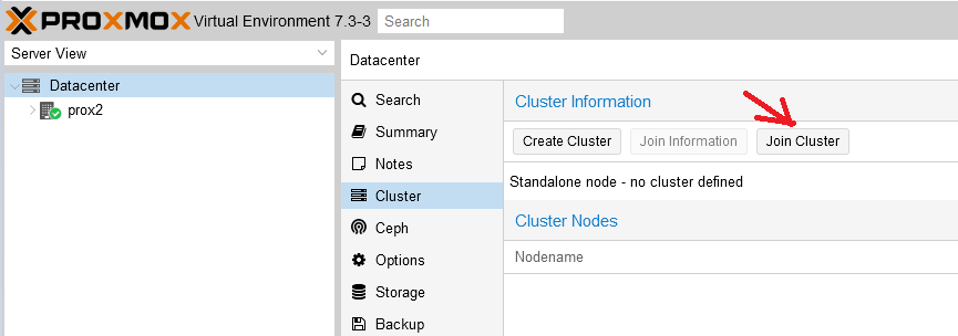 Step 4. On the second server, in the “Cluster” section, go to the “Join Cluster” tab: