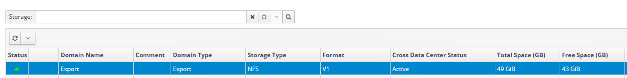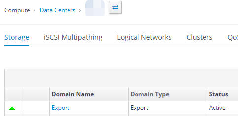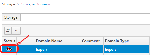 5. After disabling it in the Storage section- Storage Domains section on our Export Domain, we should see an icon indicating that the section is disabled: