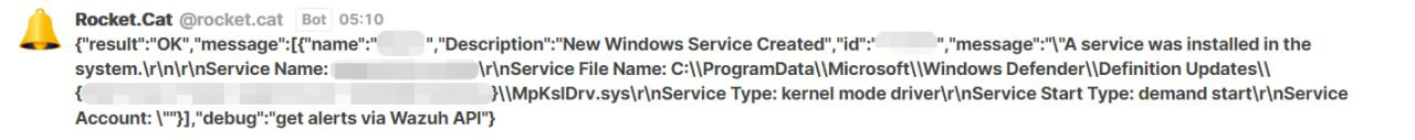 The answer is detailed and informative, but still inconvenient to view. Information from it should be presented in a more concise and easy-to-read format. To do this, Wazuh developers have provided a mechanism for integrating it with other products. In our case, the Rocket messenger system: