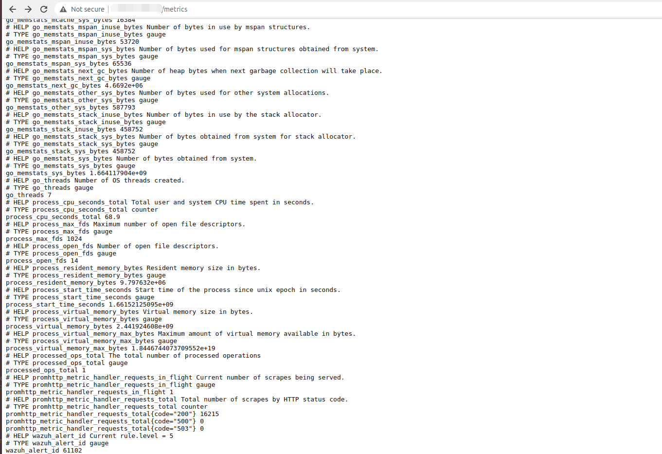 A level 5 error message is also sent to the exporter, from which Prometheus picks up this metric: