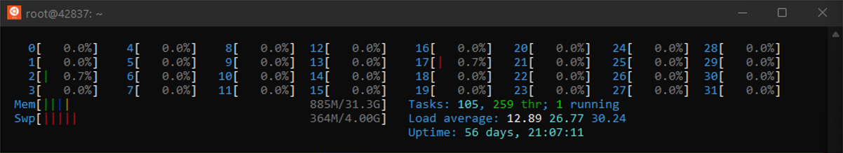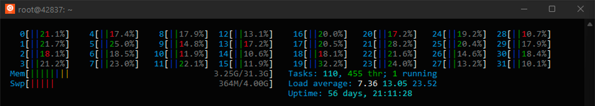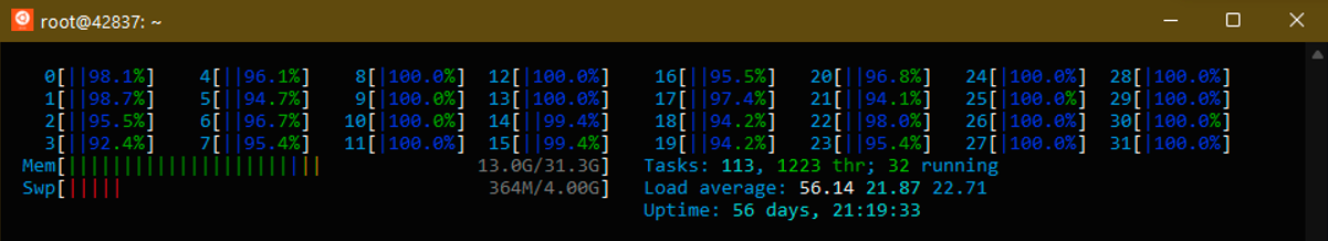 Four threads take up almost all the resources of the CPU and eat up 13 GB of RAM.
