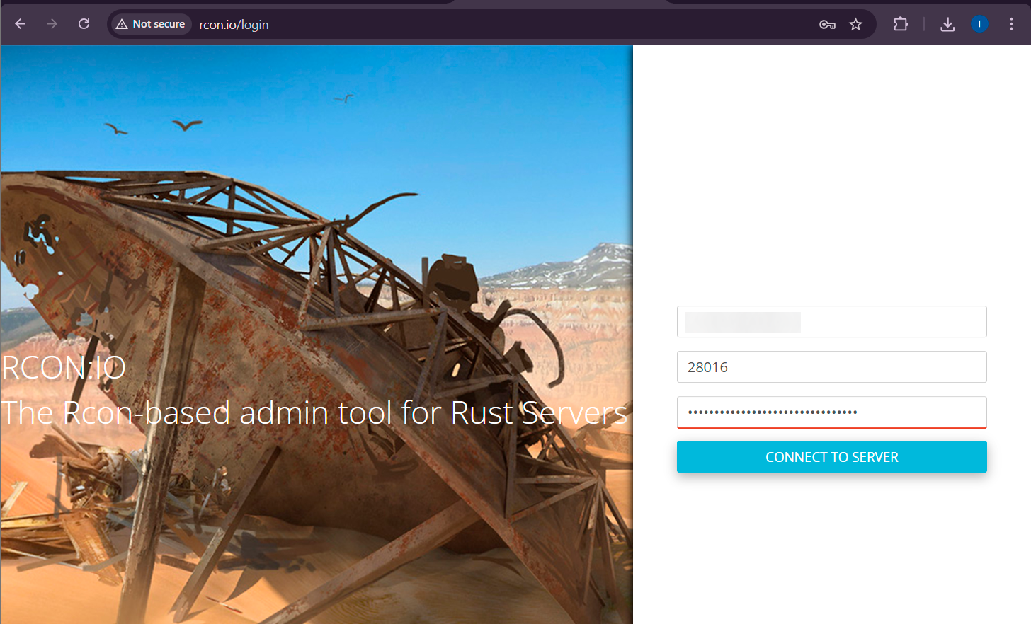 - Open rcon.io/login in your browser.