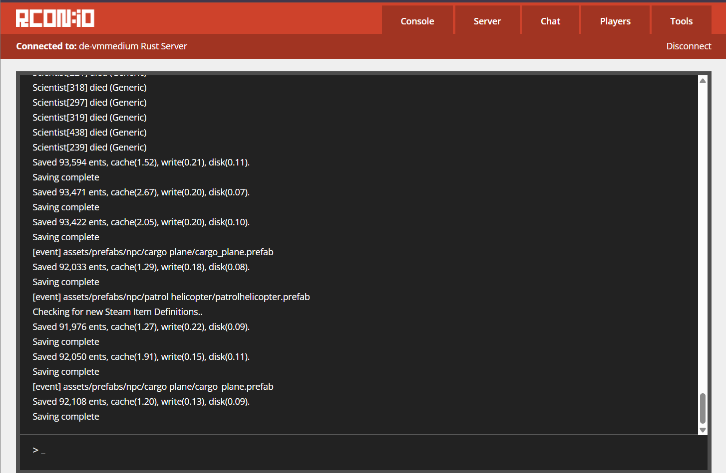 In addition to rcon.io, you can also use RustAdmin (https://www.rustadmin.com/) — a desktop RCON client with extended monitoring, ban management, and player statistics capabilities.