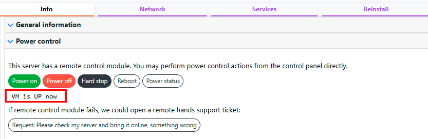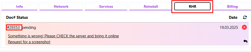 - Request: Please check my server and bring it online, something wrong - create a service request for diagnostics and troubleshooting After creating the request, the system will generate a maintenance ticket. The status of the ticket can be tracked in the corresponding menu: