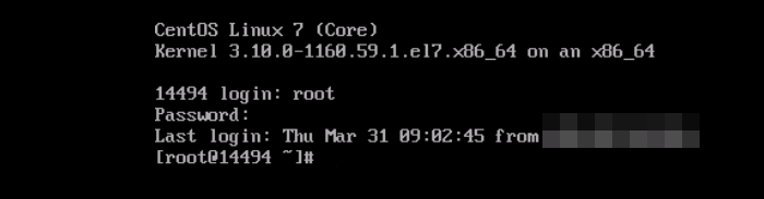 An example of an open console for CentOS: