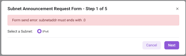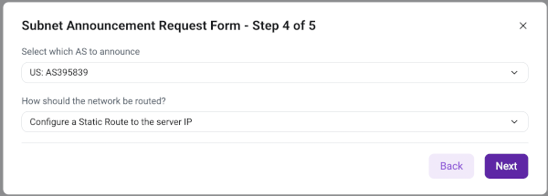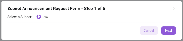 Step 1 - Select the type of announced subnet:
