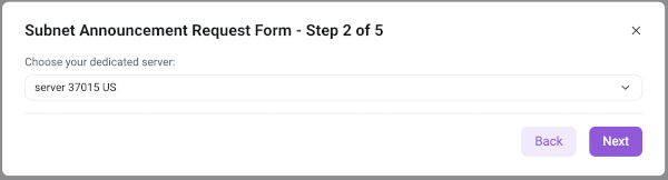 Step 2 - Select the dedicated server for which to announce the subnet: