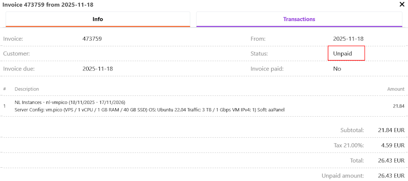 - Managing the server after ordering: Invapi Control Panel.