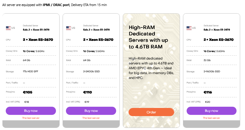 Special offers on ready servers with discounts.
