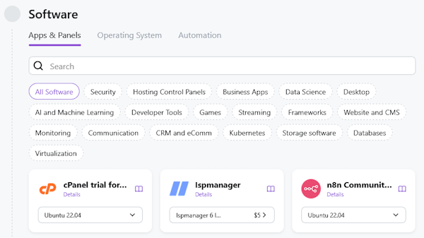 - Server Control Panel from the Marketplace (if necessary)