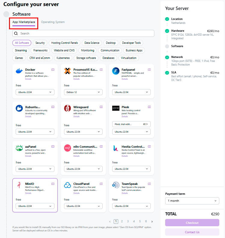 Order a Server Through the HOSTKEY Website¶