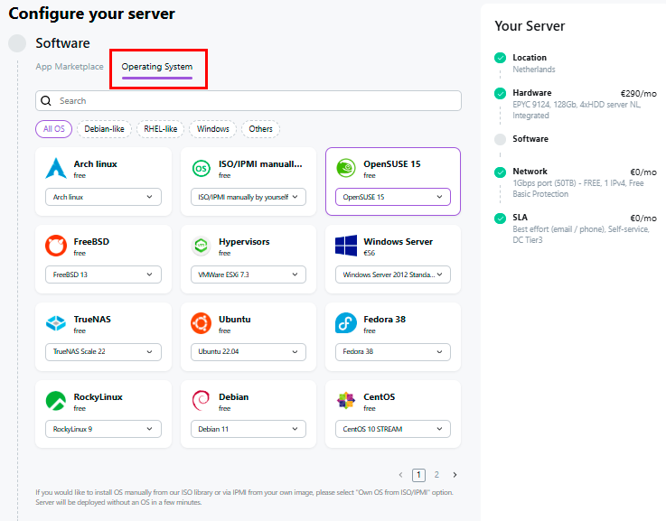 The operating system will be automatically selected when choosing an application from the App Marketplace.
