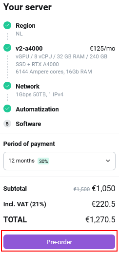 - Go to the page for ordering a new server;