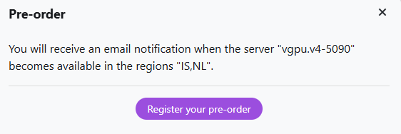 - You will receive an email notification when the server is in stock;