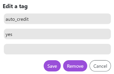 The tag auto_credit will be appeared in the Tags tab after enabling automatic payment: