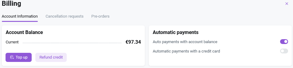 In the Billing tab, click on Auto payments from the credit balance to select it: