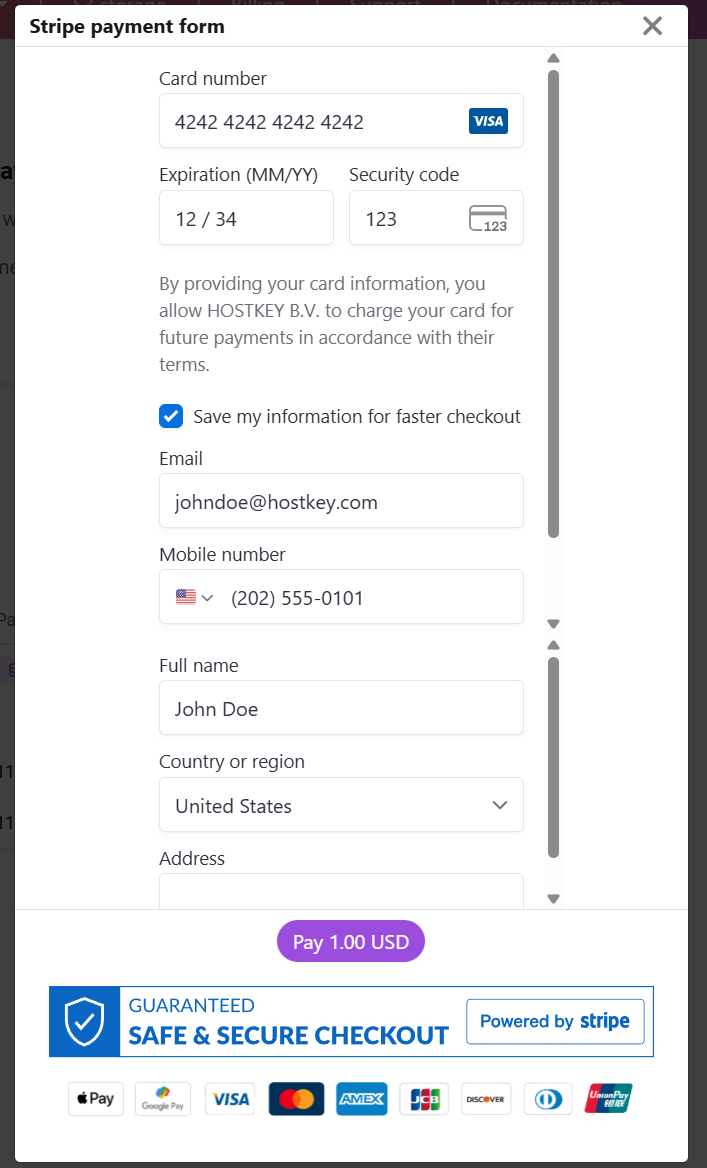 Then fill in the required payment details. The system will prompt you to pay 1 Euro:
