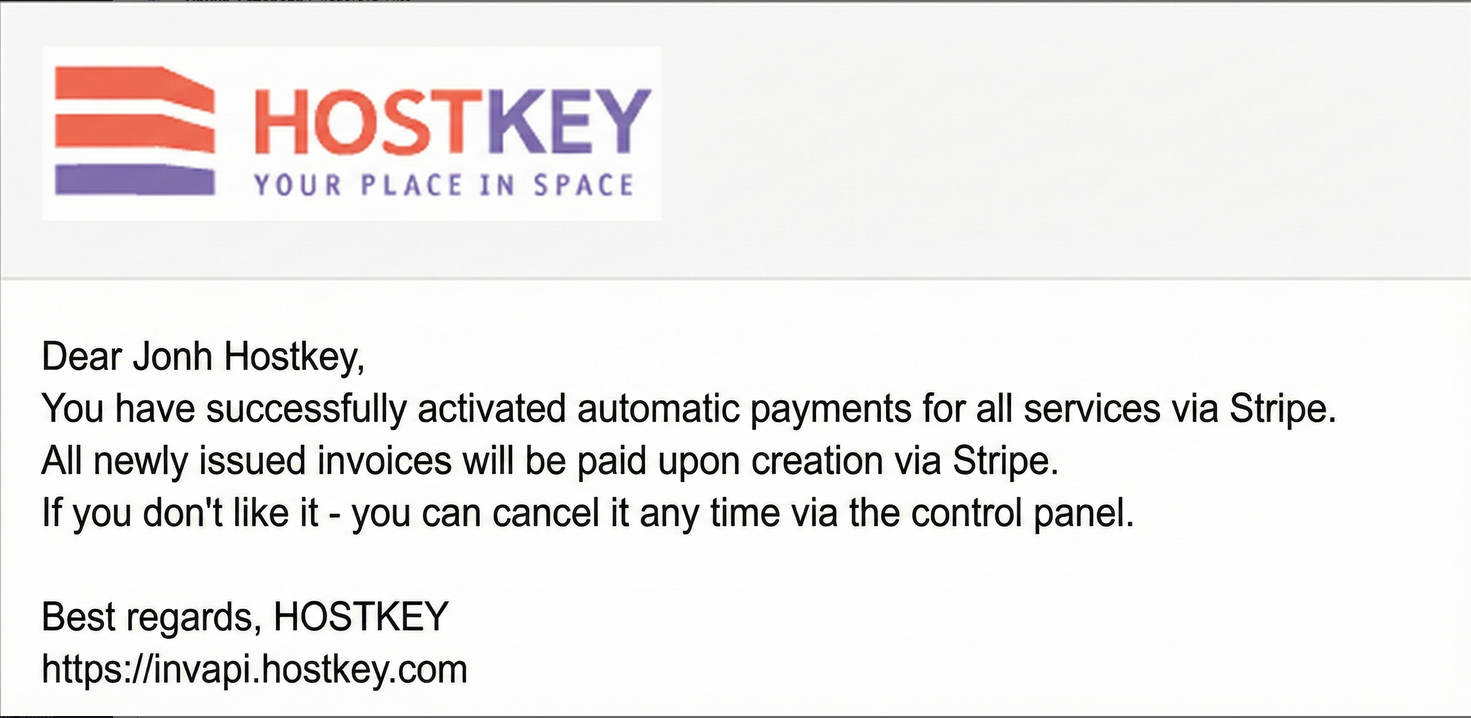 - You will receive an informational email confirming the successful activation of auto‑payments.