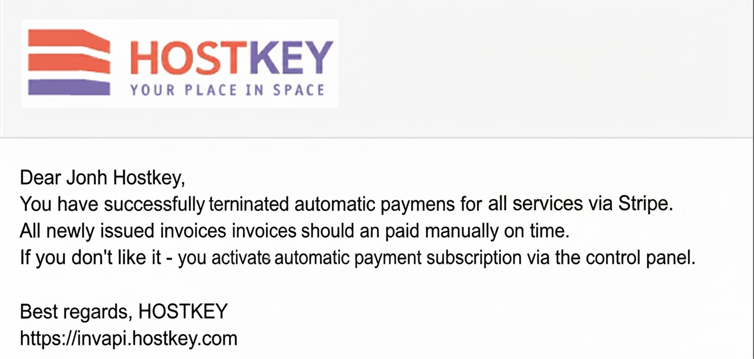 After this, automatic payments from the bank card will be cancelled, all switches will move to the “Off” position, and a confirmation email will be sent.